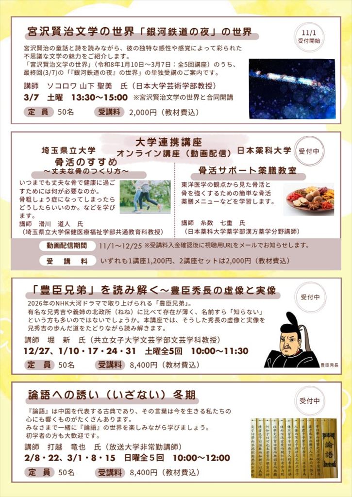 11月26日(水) 12~14時に開催。風邪やインフルエンザが流行っているせいか今回の参加者はいつもの半分でした。食事の後、松見茂郷さん(上尾市教育委員会のまなびすとへの登録者)のギター演奏で懐メロの数々を歌いました。