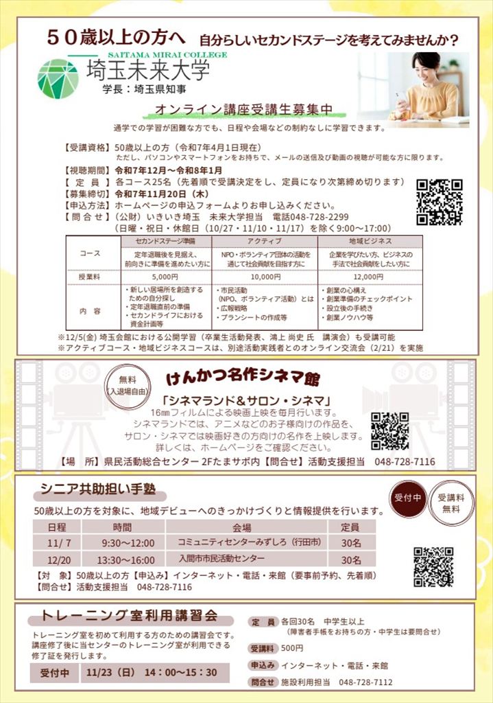 次回12月24日(水)はオカリナで歌おうです。次々回1月28日(水)は楽しい脳トレです。お楽しみに!