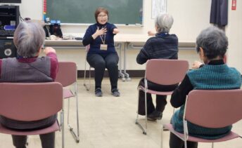 参加者が一番苦戦していたのは手の脳トレでした。「片手をグーで前、もう一方をパーで胸、の左右の入れ替え」はできるのですが、その逆の「片手をパーで前、もう一方をグーで胸、の左右の入れ替え」ができない人が多かったです。