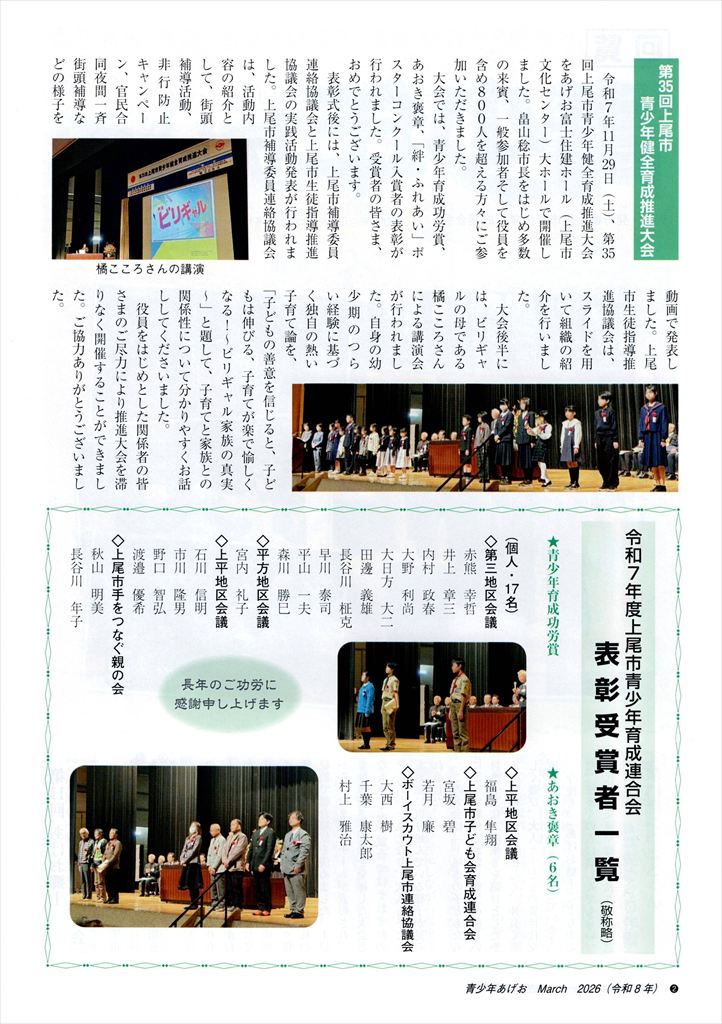 上尾市青少年育成連合会からの活動報告