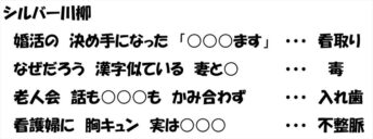 ②シルバー川柳 ブラックユーモアの効いた川柳です。空欄に入る文字は?